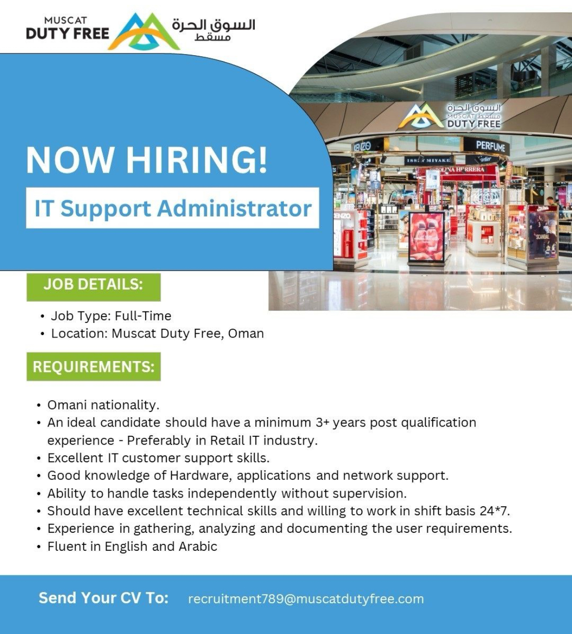 السوق الحرة مسقط - وظيفة شاغرة ( IT Support Administrator )