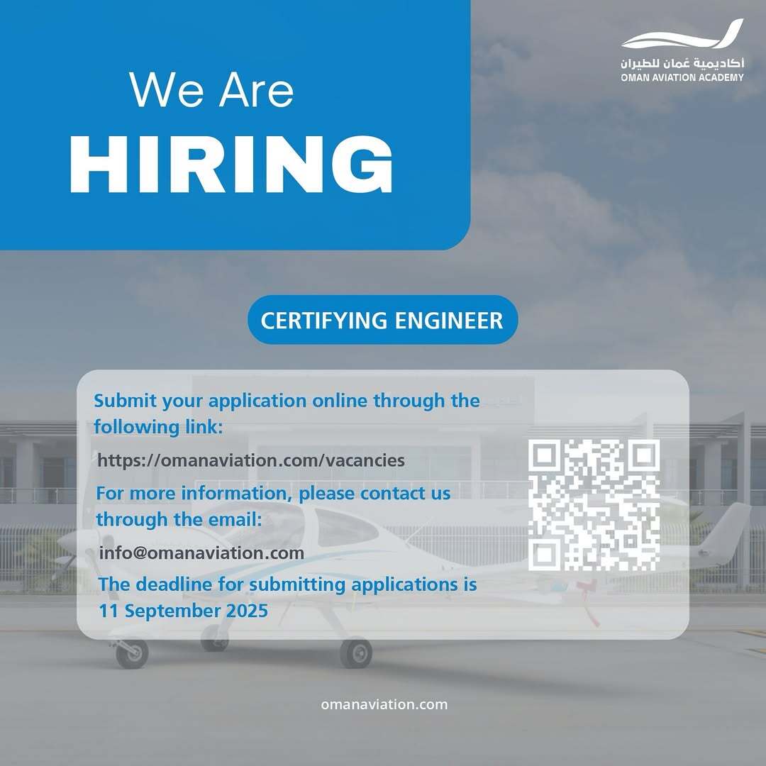 أكاديمية عمان للطيران - وظيفة شاغرة ( CERTIFYING ENGINEER )