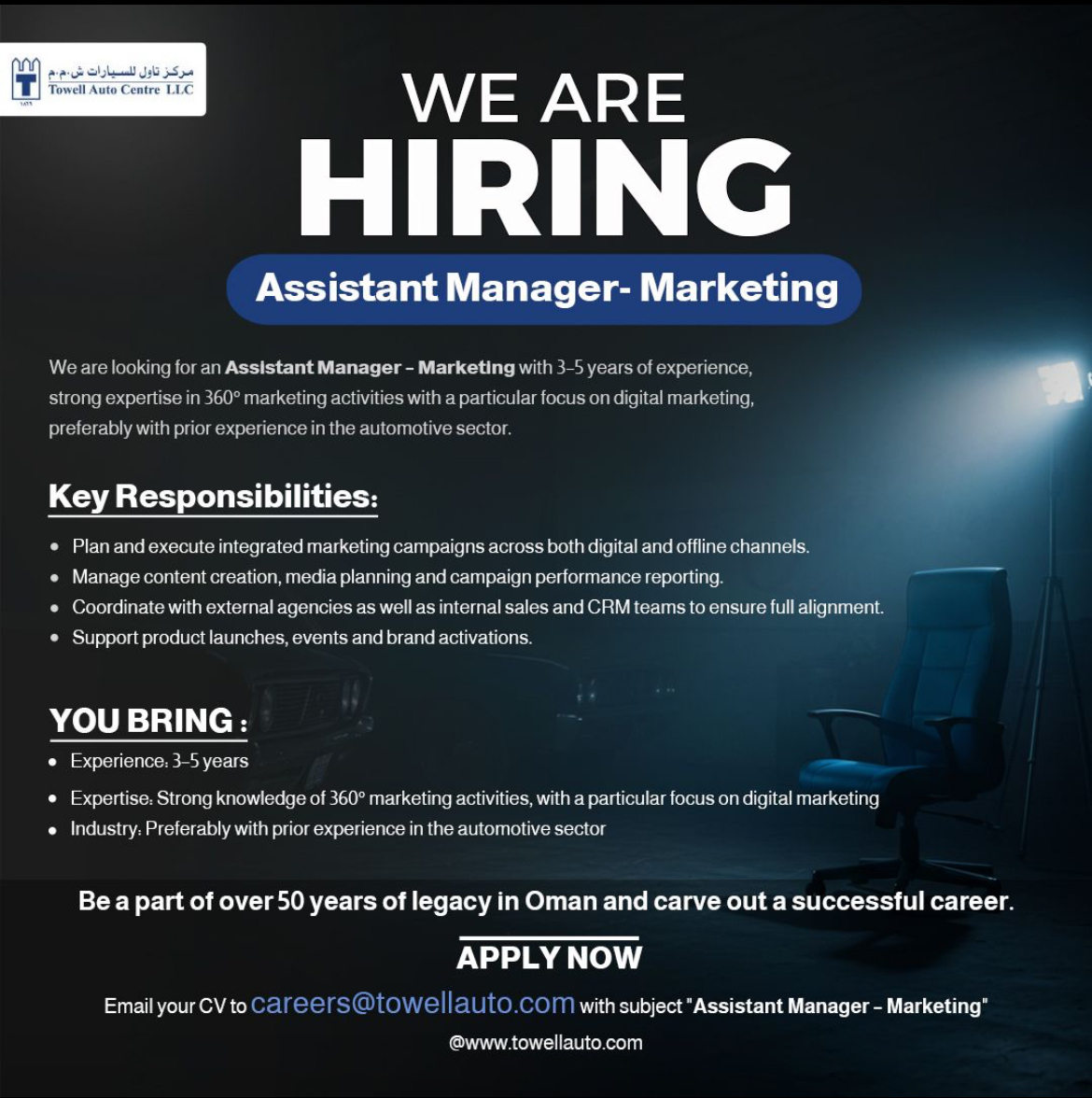 مركز تاول للسيارات - وظيفة شاغرة ( Assistant Manager- Marketing )
