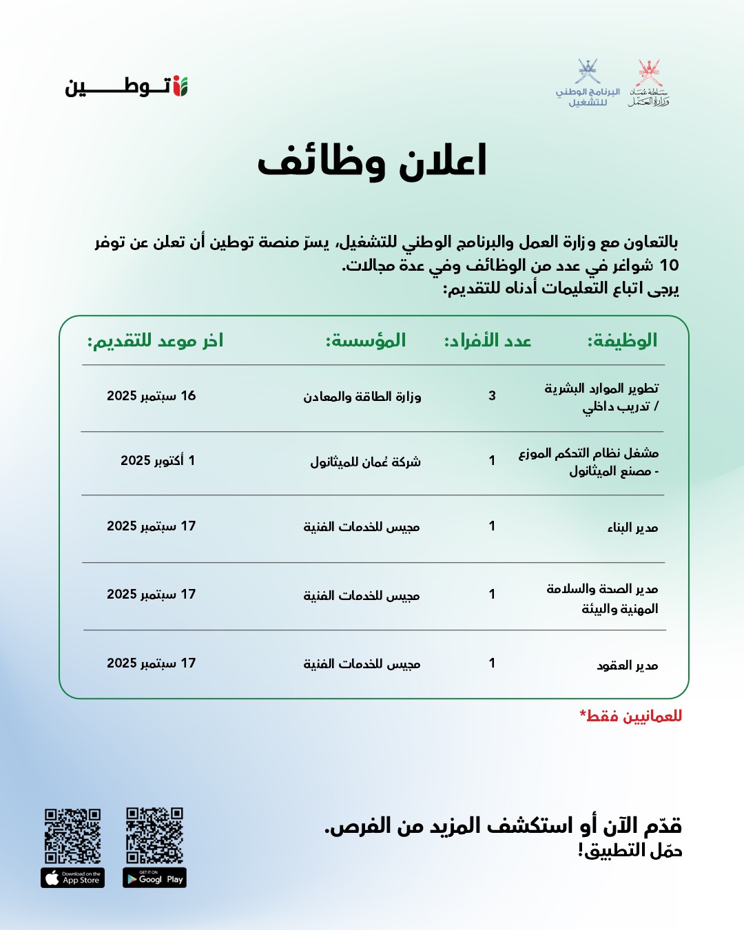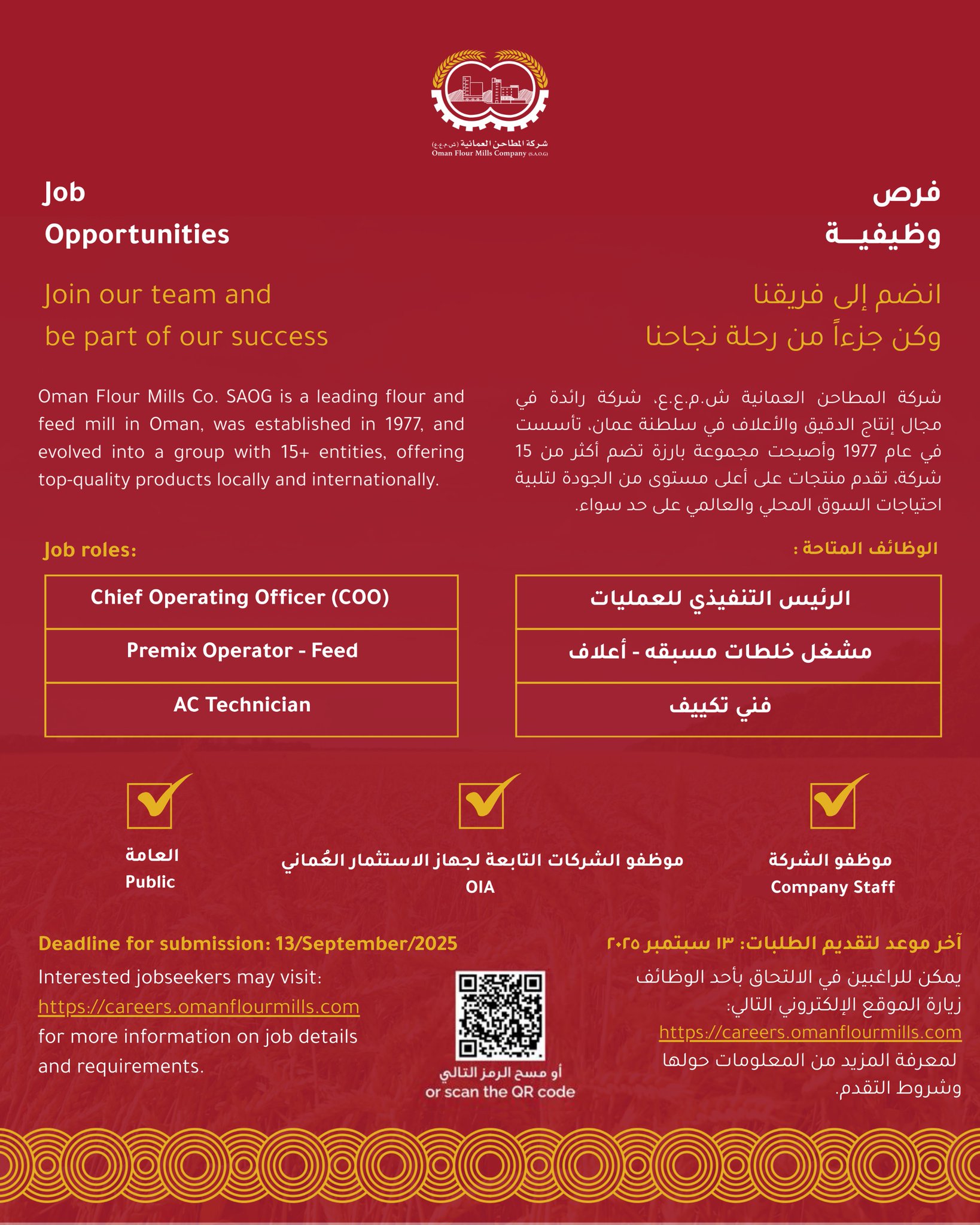 شركة المطاحن العُمانية - فرص وظيفية في عدد من التخصصات