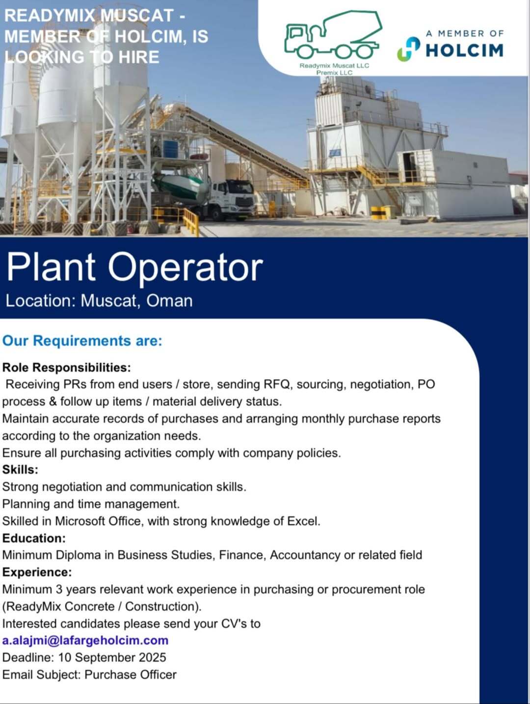 شركة ريدي مكس مسقط - وظيفة شاغرة ( Plant Operator )