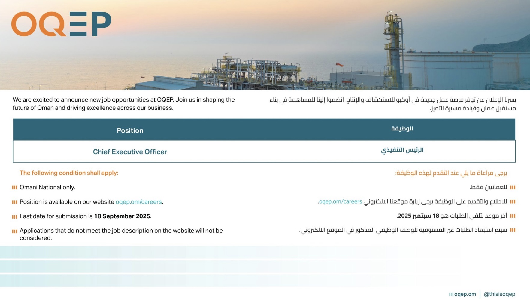 شركة أوكيو للاستكشاف والإنتاج - وظيفة شاغرة ( الرئيس التنفيذي )