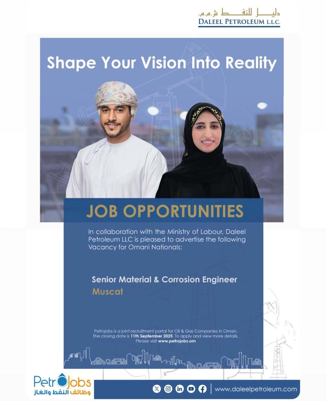 شركة دليل للنفط في مسقط - وظيفة شاغرة ( Senior Material & Corrosion Engineer )