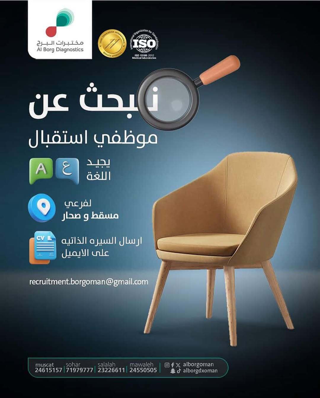 مختبرات البرج في مسقط - وظيفة شاغرة ( موظف استقبال )