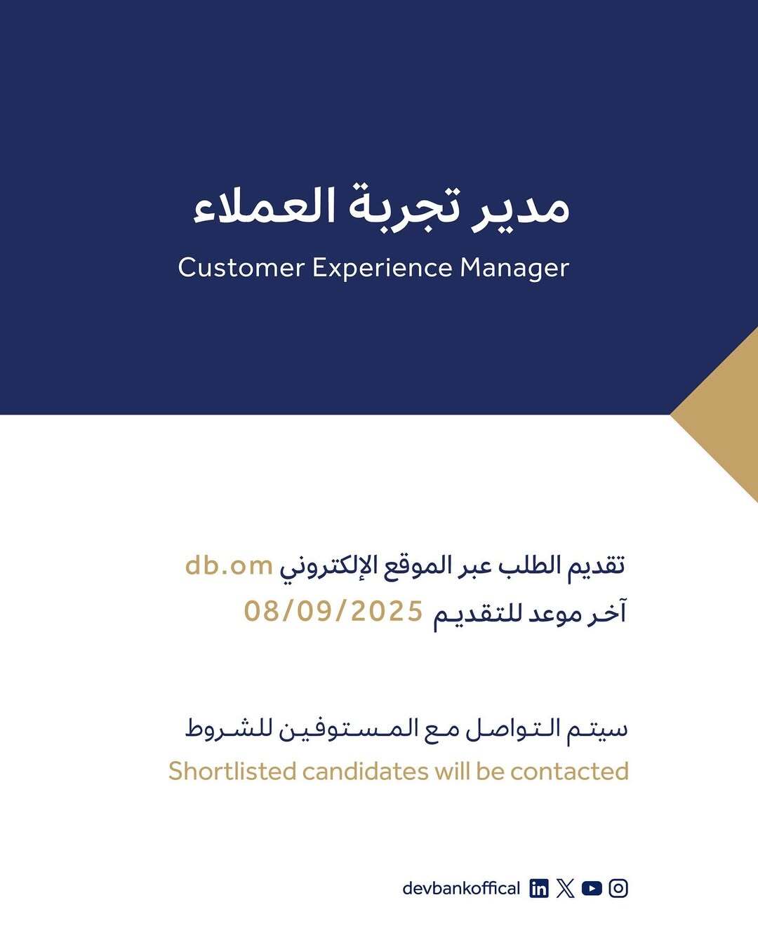 بنك التنمية - وظيفة شاغرة ( مدير تجربة العملاء )