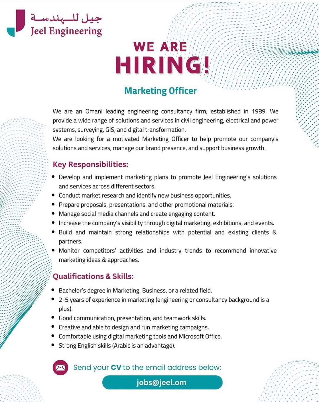 شركة الجيل للهندسة - وظيفة شاغرة ( Marketing Officer )