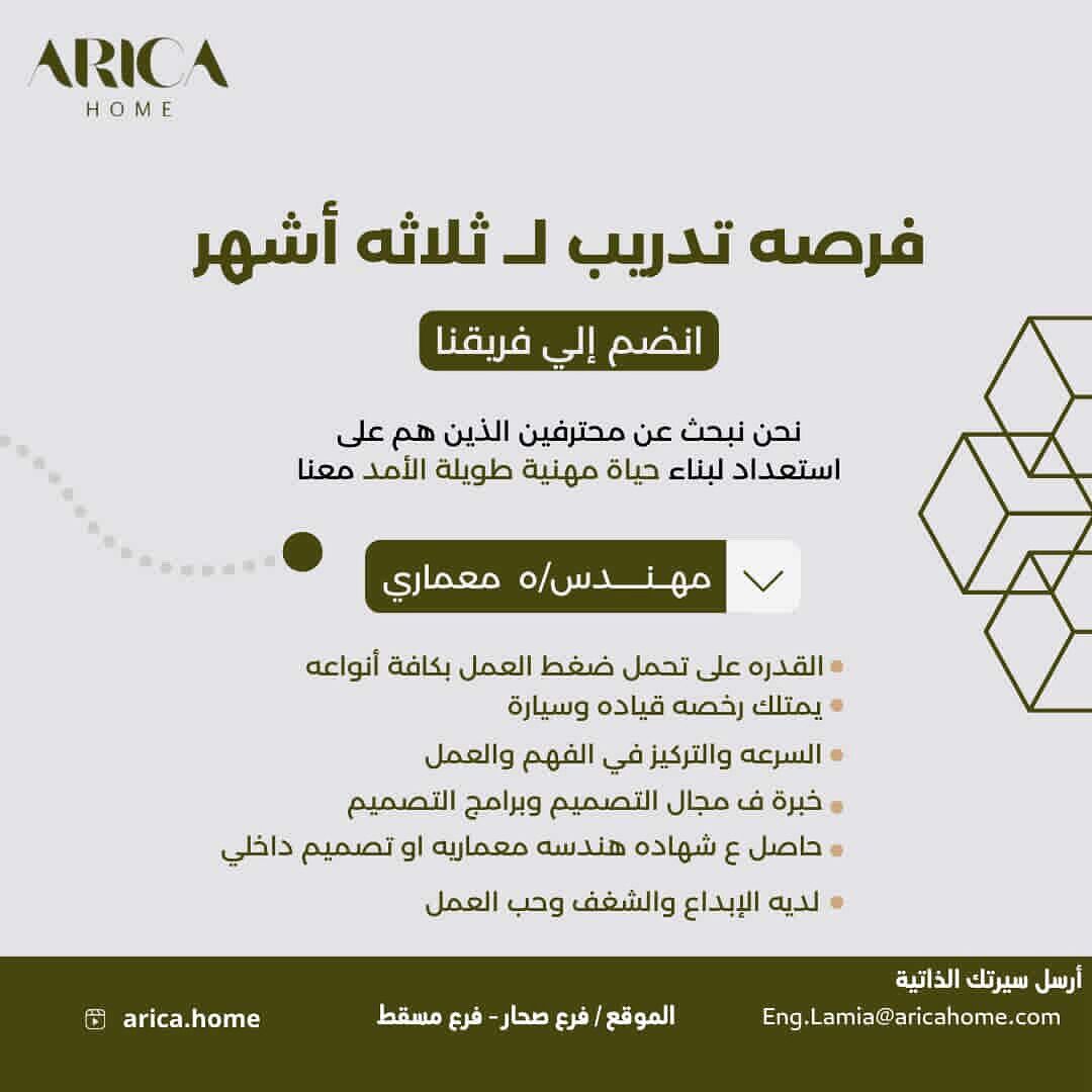 شركة أريكا هوم - فرصة تدريبية لمدة 3 أشهر في مجال الهندسة المعمارية