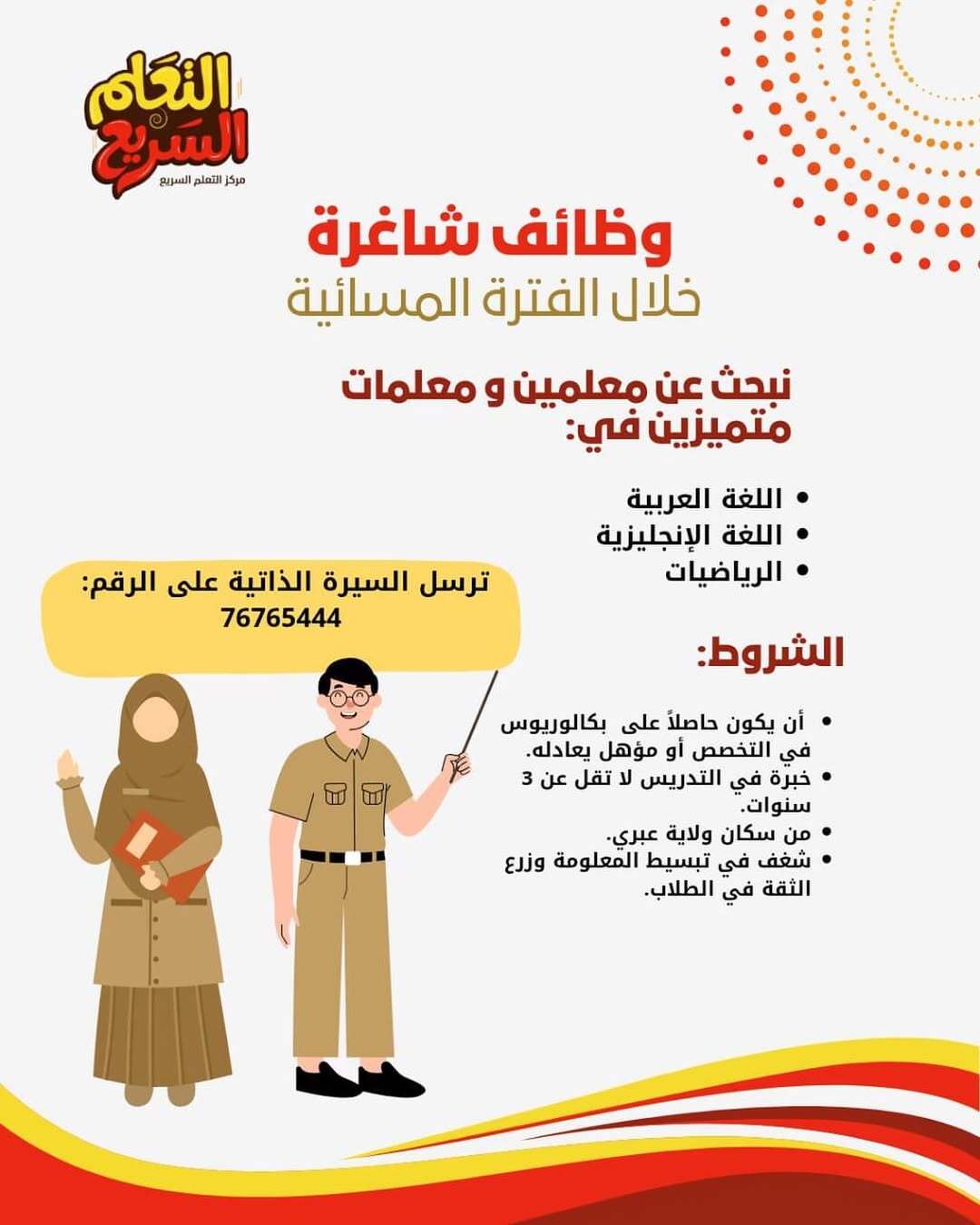 مركز التعليم السريع - وظائف شاغرة ( معلمين و معلمات )