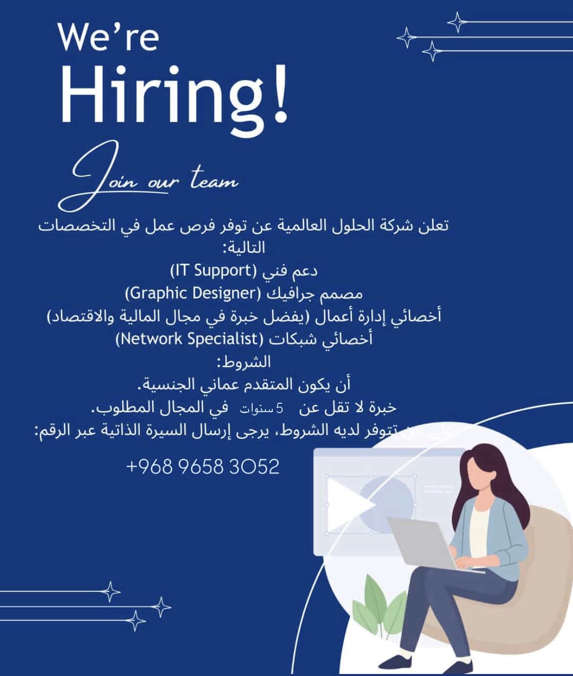 شركة محلية في مجال تقنية المعلومات في مسقط - وظائف شاغرة