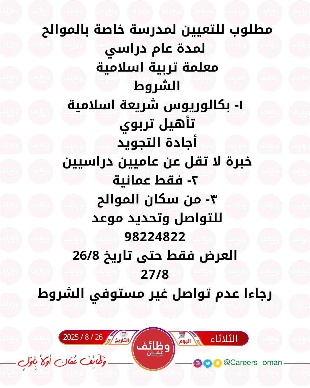 مدرسة خاصة في الموالح - وظائف شاغرة