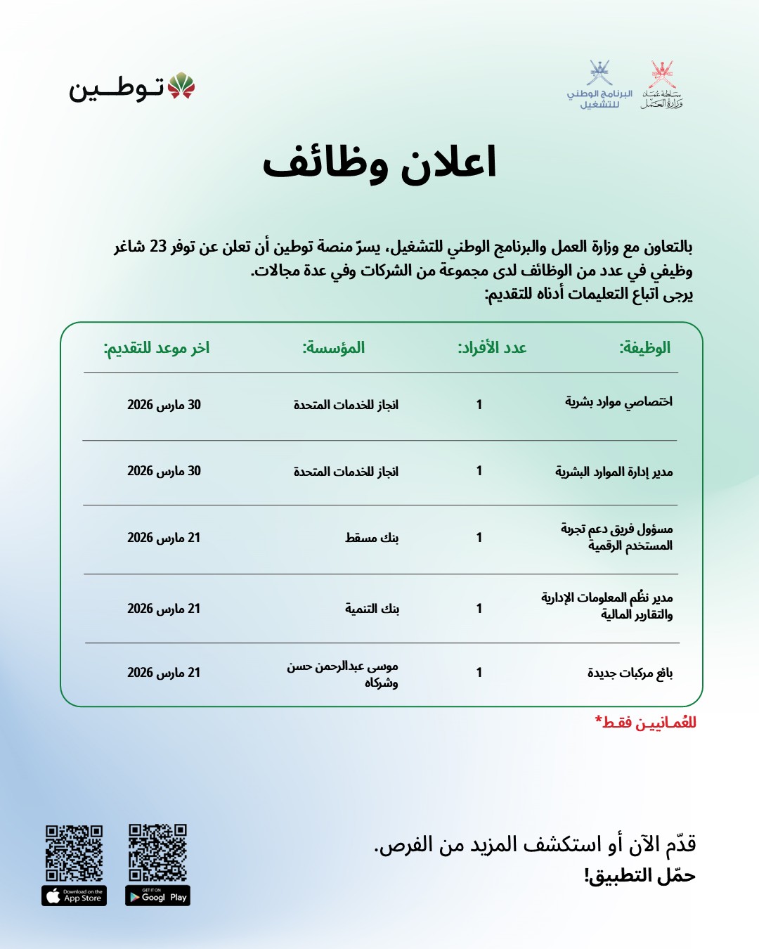 منصة توطين - توفر 23 شاغر وظيفي لدى مجموعة من الشركات وفي عدة مجالات