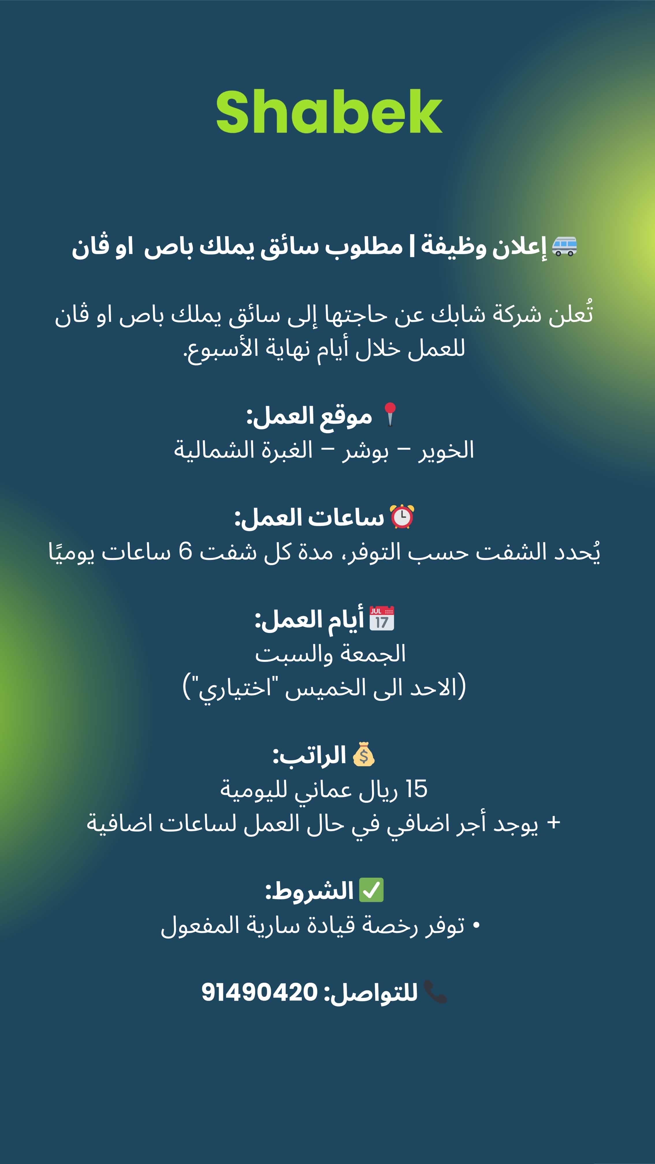 شركة شابك - فرص وظيفية ( سائق )