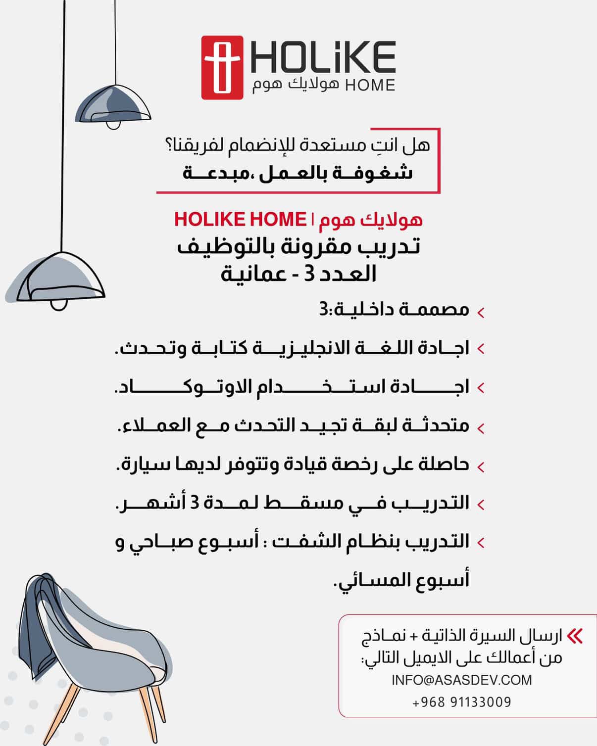 شركة هولايك هوم - فرصة تدريب مقرون بالتوظيف في مجال التصميم الداخلي