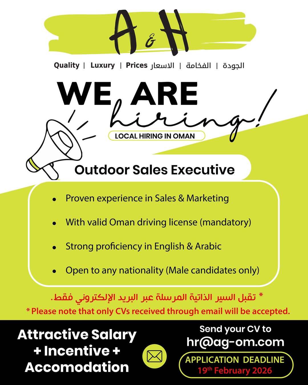 متجر آيه اند اتش - وظيفة شاغرة ( Outdoor Sales Executive )