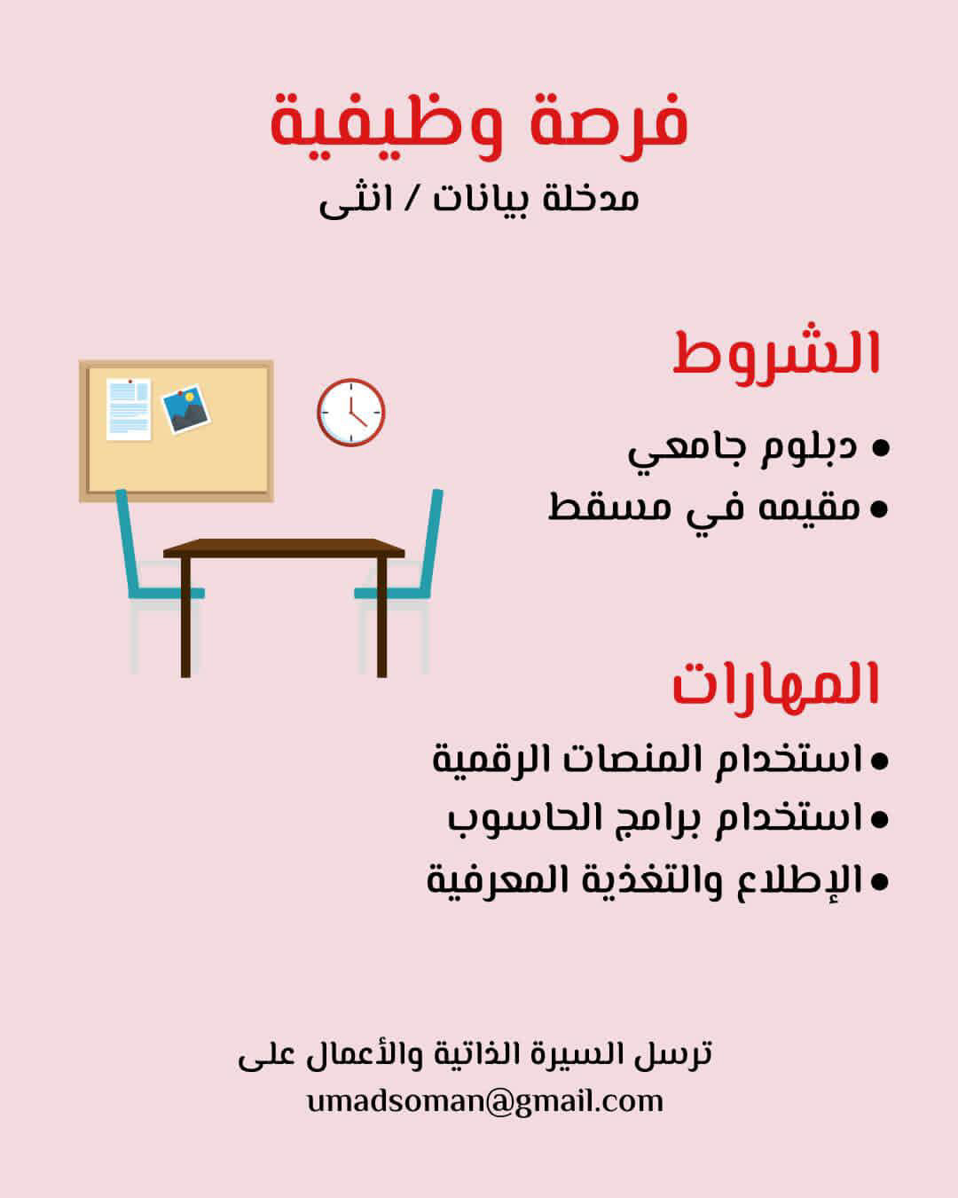 شركة رائدة في مسقط - وظيفة شاغرة ( مدخلة بيانات )