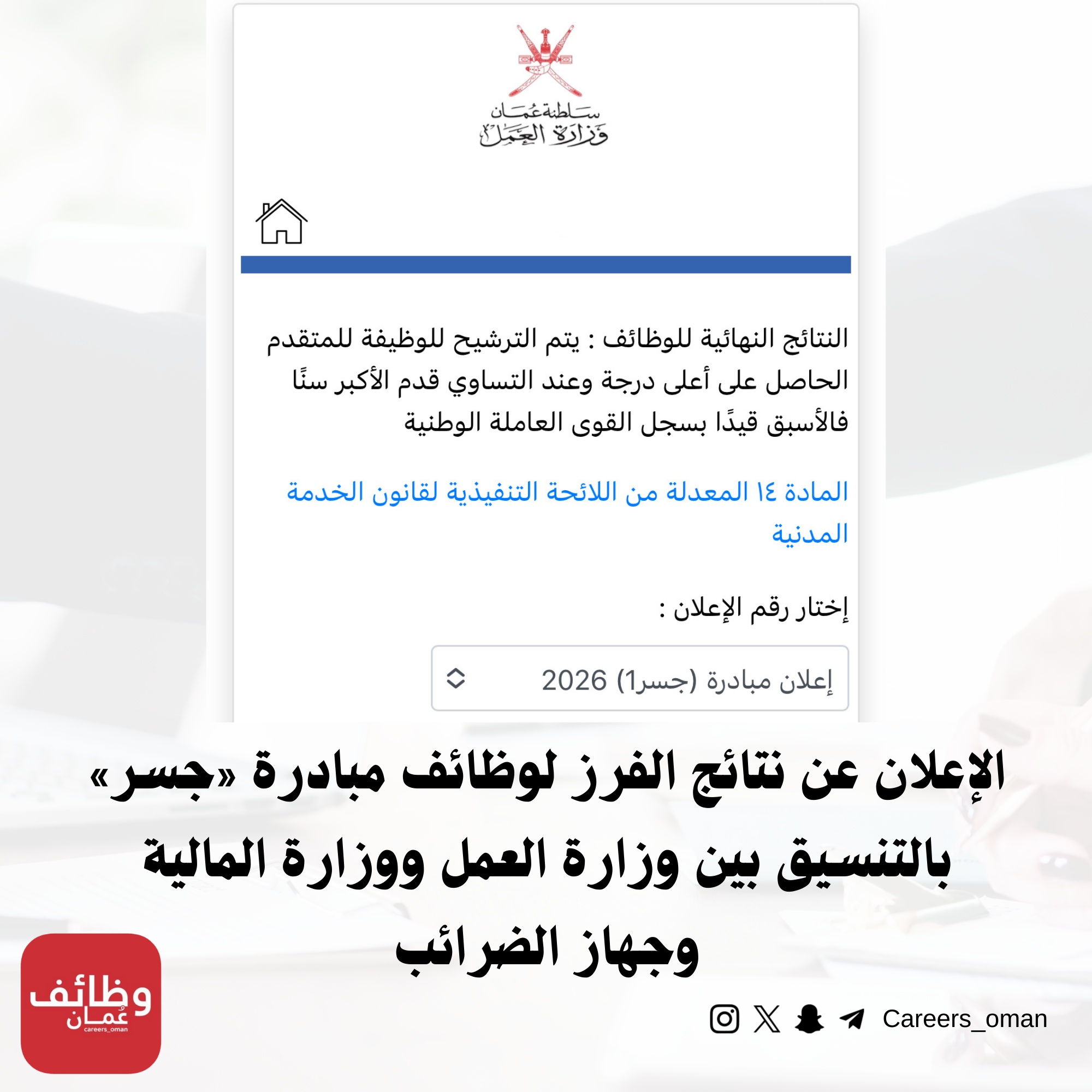 الإعلان عن نتائج الفرز لوظائف مبادرة «جسر» بالتنسيق بين وزارة العمل ووزارة المالية وجهاز الضرائب