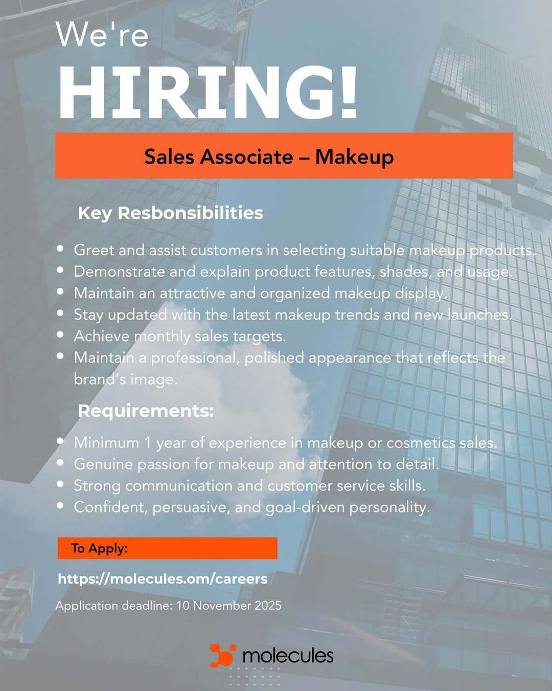 شركة جزيئات - وظيفة شاغرة ( موظفة مبيعات - مكياج )