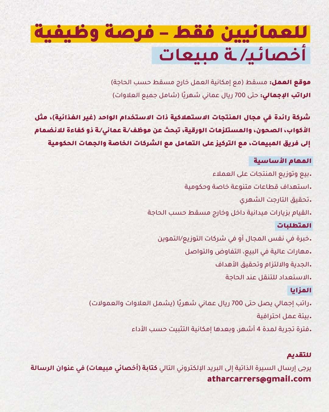 ارسل السيرة الذاتية على الايميل atharcarrers@gmail.com