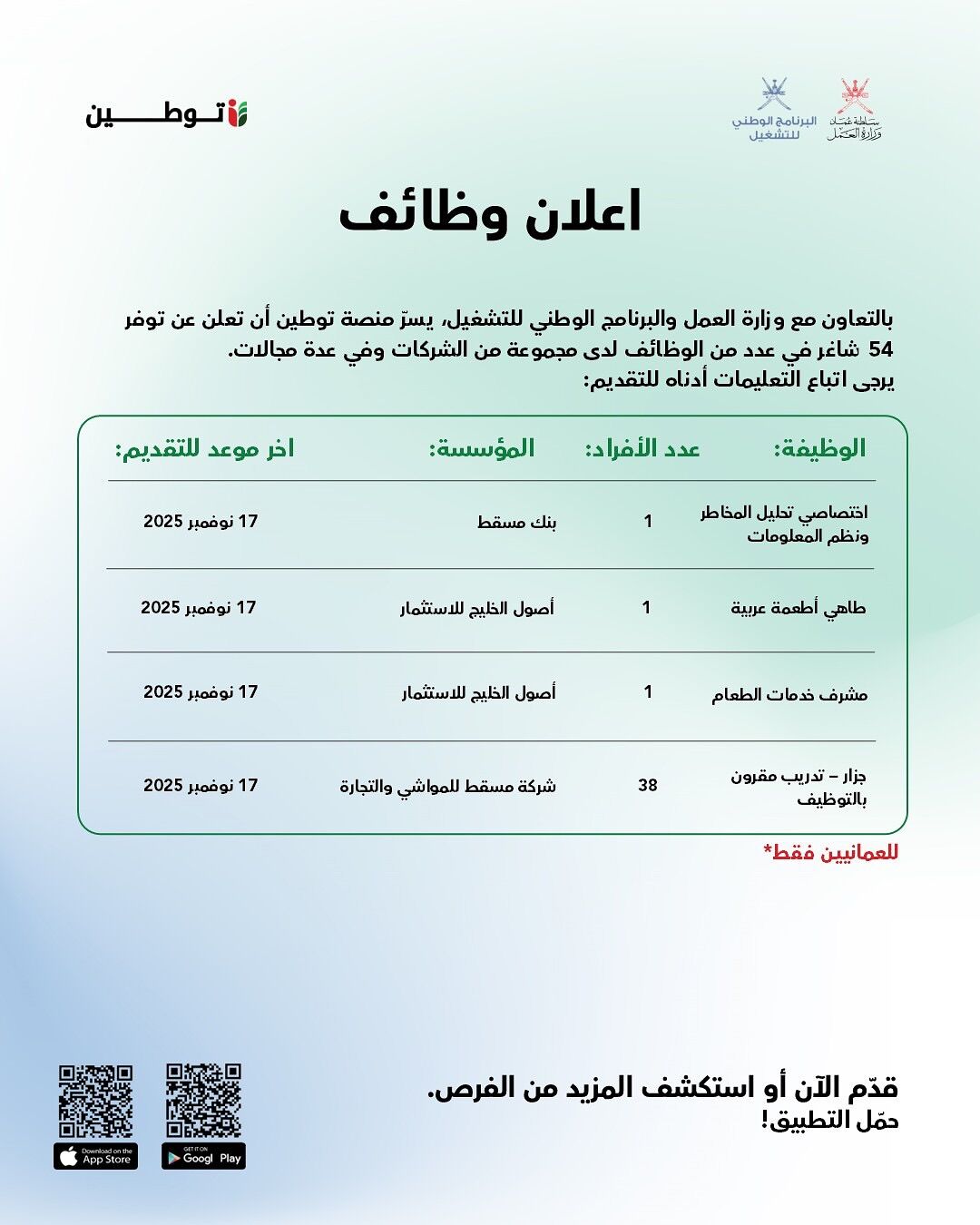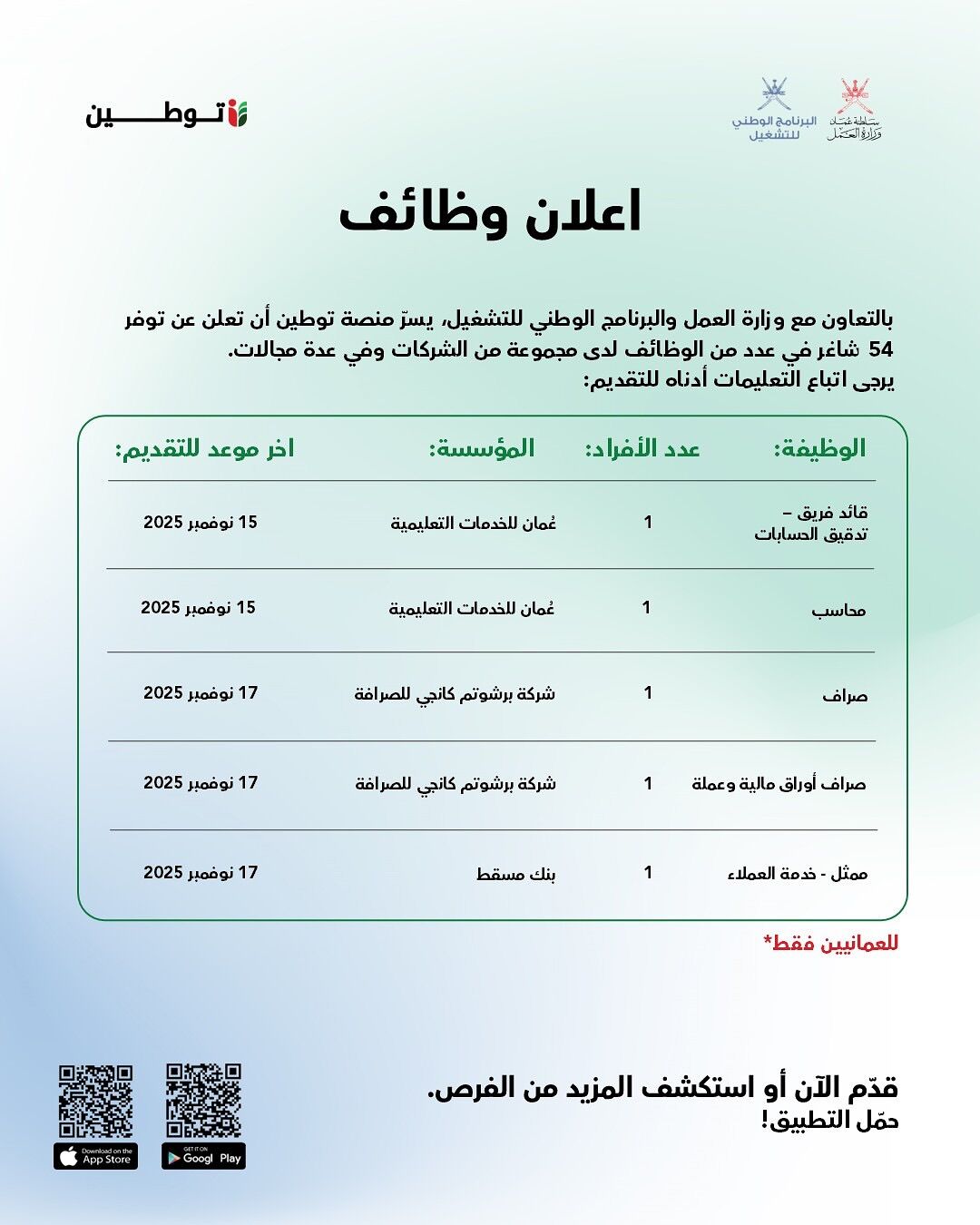 منصة توطين - 25 شاغر في عدد من الوظائف لدى مجموعة من الشركات وفي عدة مجالات