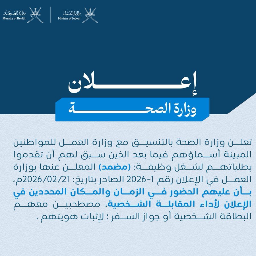 https://www.moh.gov.om/ar/المركز-الإعلامي/الإعلانات/أسماء-المواطنين-المقبولين-لشغل-وظيفة-فني-أ-تغذية/