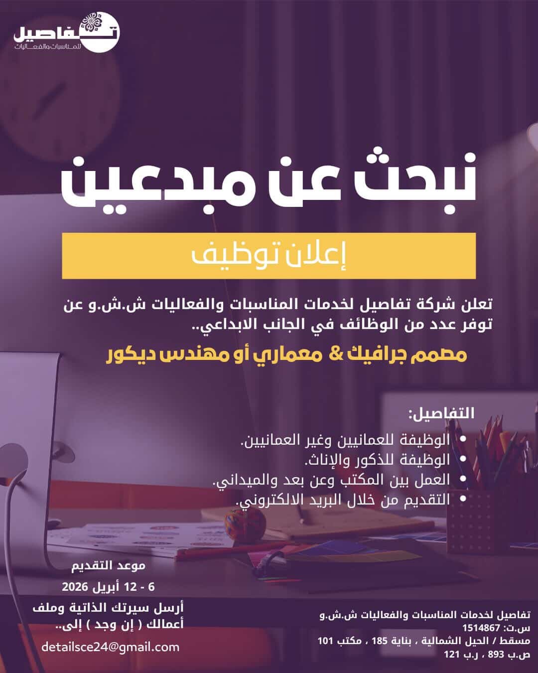 ارسل السيرة الذاتية على الايميل omancv2026@gmail.com