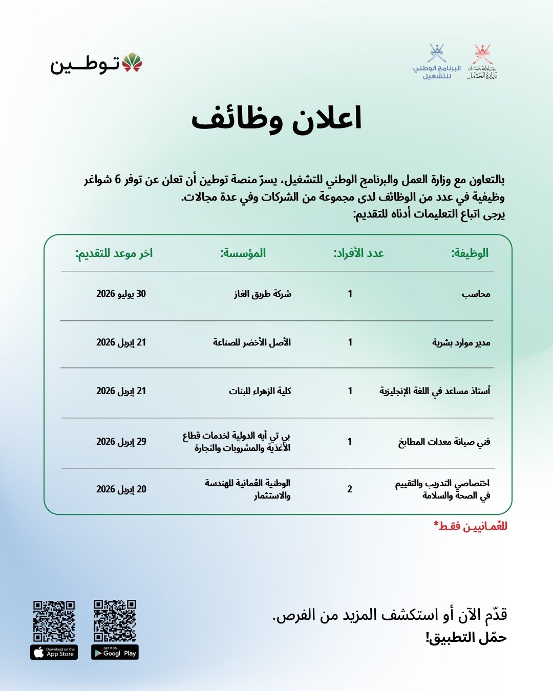 منصة توطين - توفر 6 شواغر وظيفية لدى مجموعة من الشركات وفي عدة مجالات