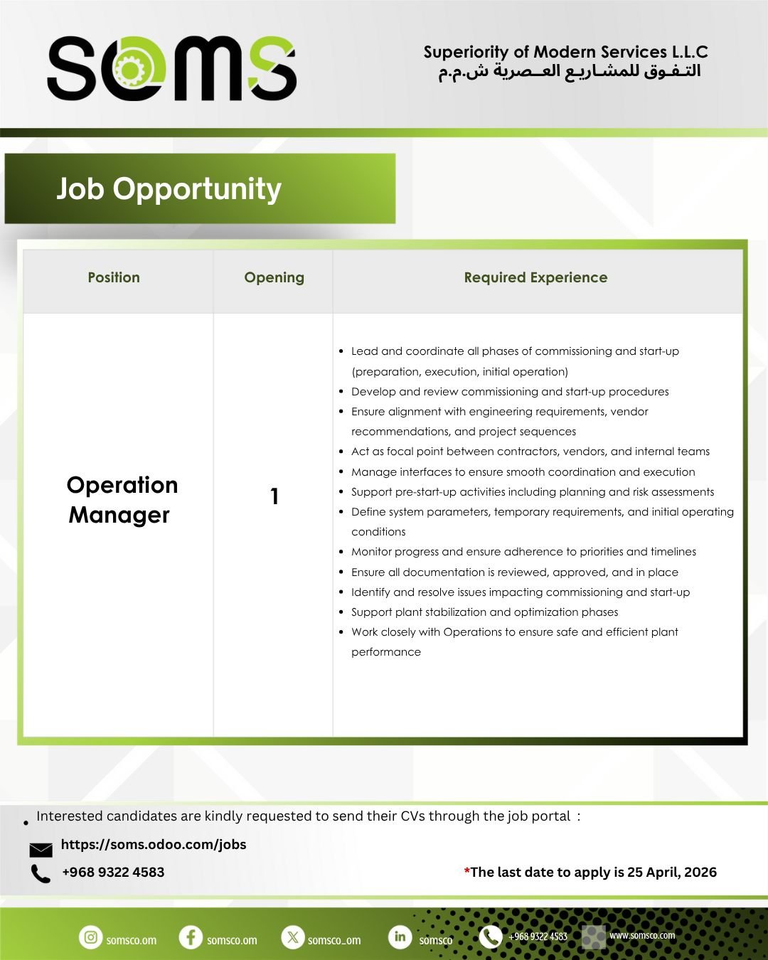 ارسل السيرة الذاتية على الايميل info@sfc-oman.com