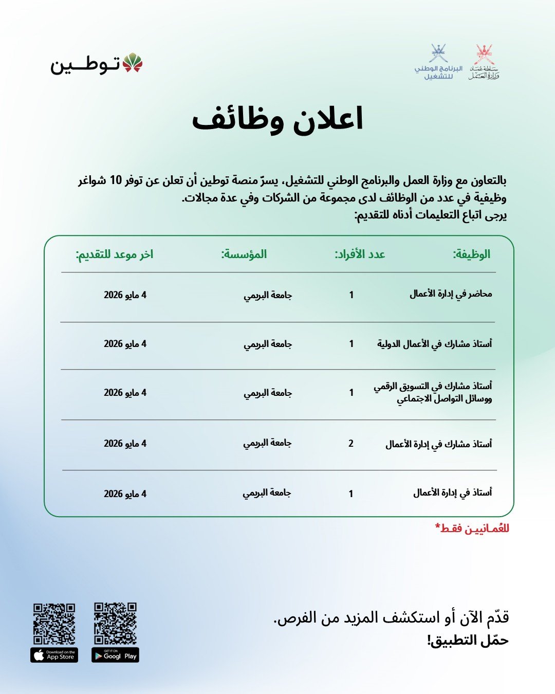 رابط التسجيل http://www.omantowerco.om/careers