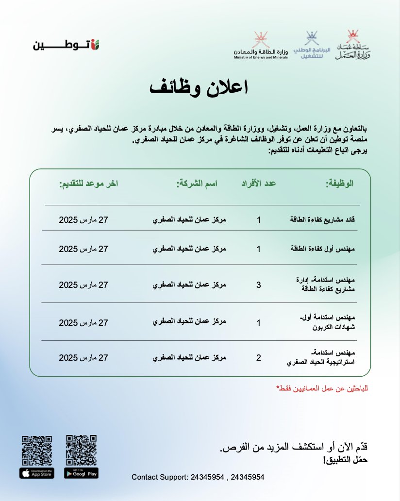 منصة توطين - 11 وظيفة شاغرة في مركز عمان للحياد الصفري