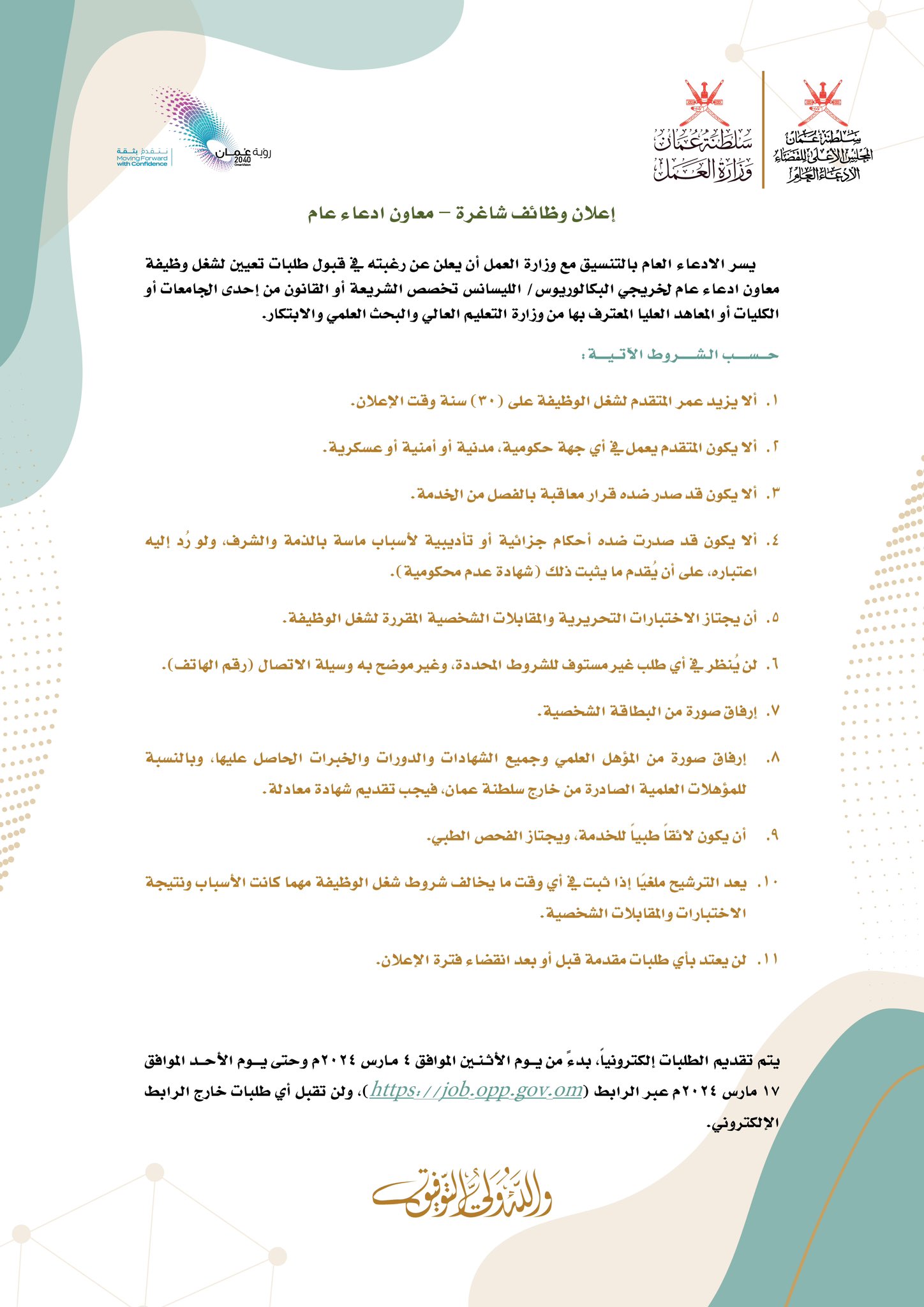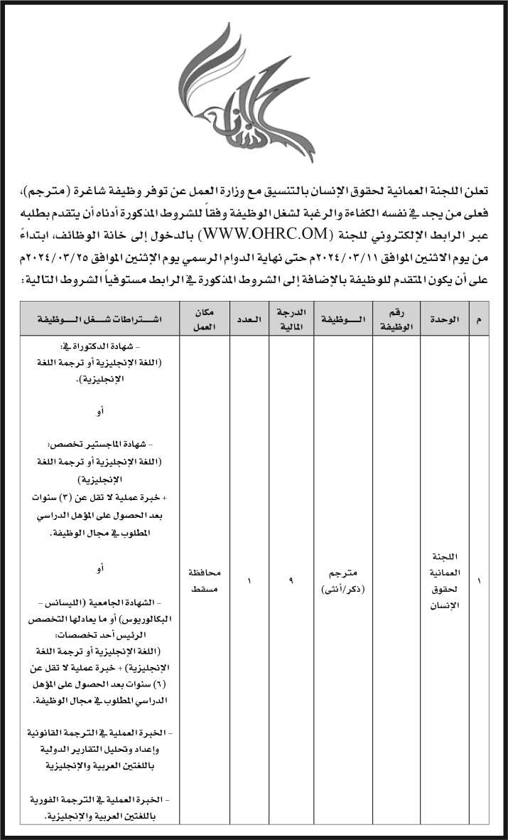 اللجنة العمانية لحقوق الإنسان - وظيفة شاغرة ( مترجم )