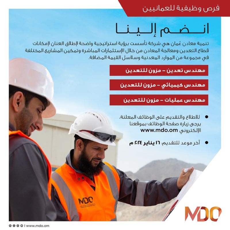 تنمية معادن عمان - وظائف شاغرة ( مهندس تعدين - مهندس كيميائي - مهندس عمليات )
