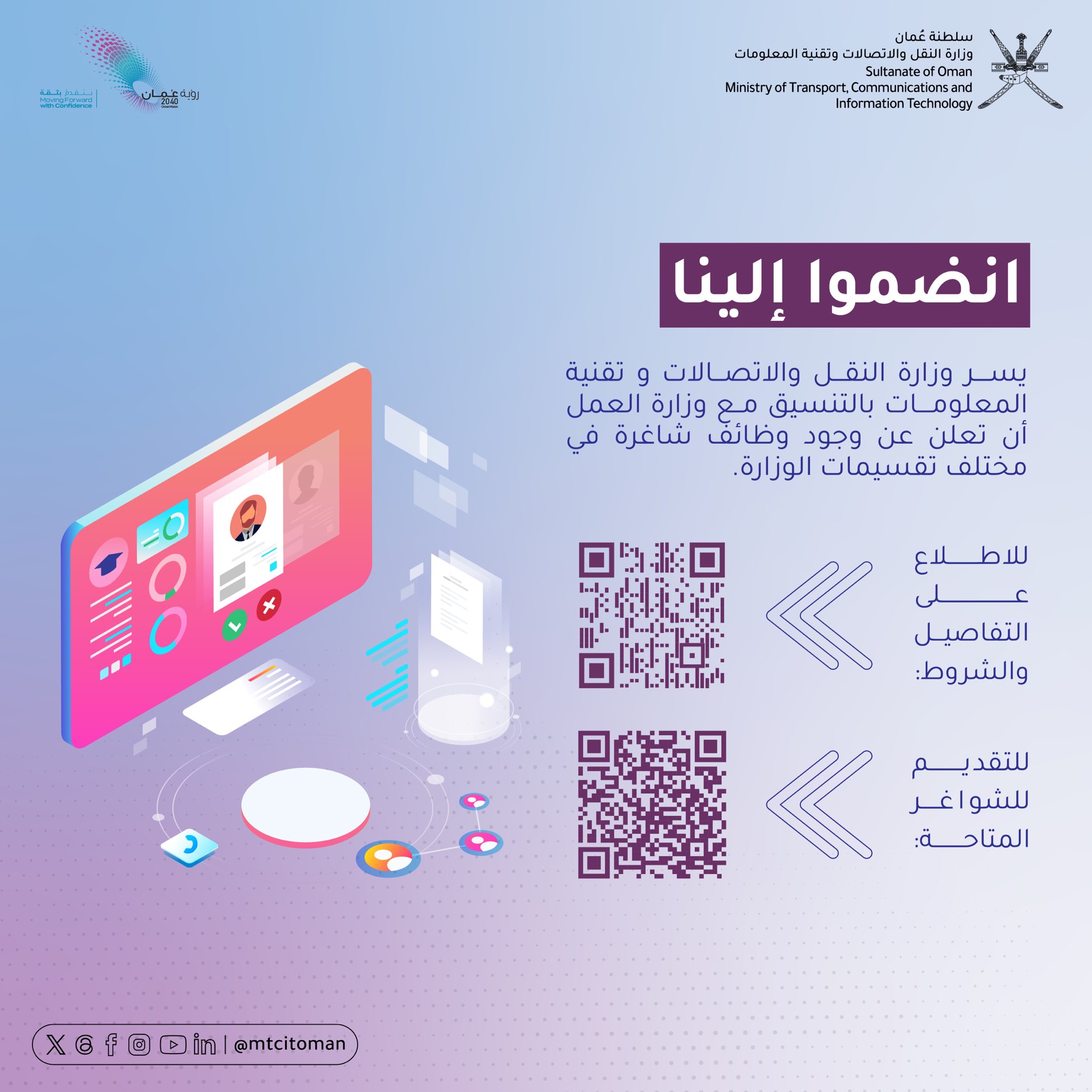 وزارة النقل والاتصالات وتقنية المعلومات بالتنسيق مع وزارة العمل - وظائف شاغرة