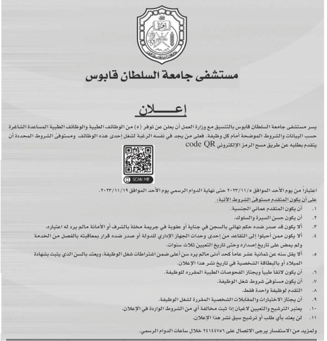 مستشفى جامعة السلطان قابوس - وظائف شاغرة