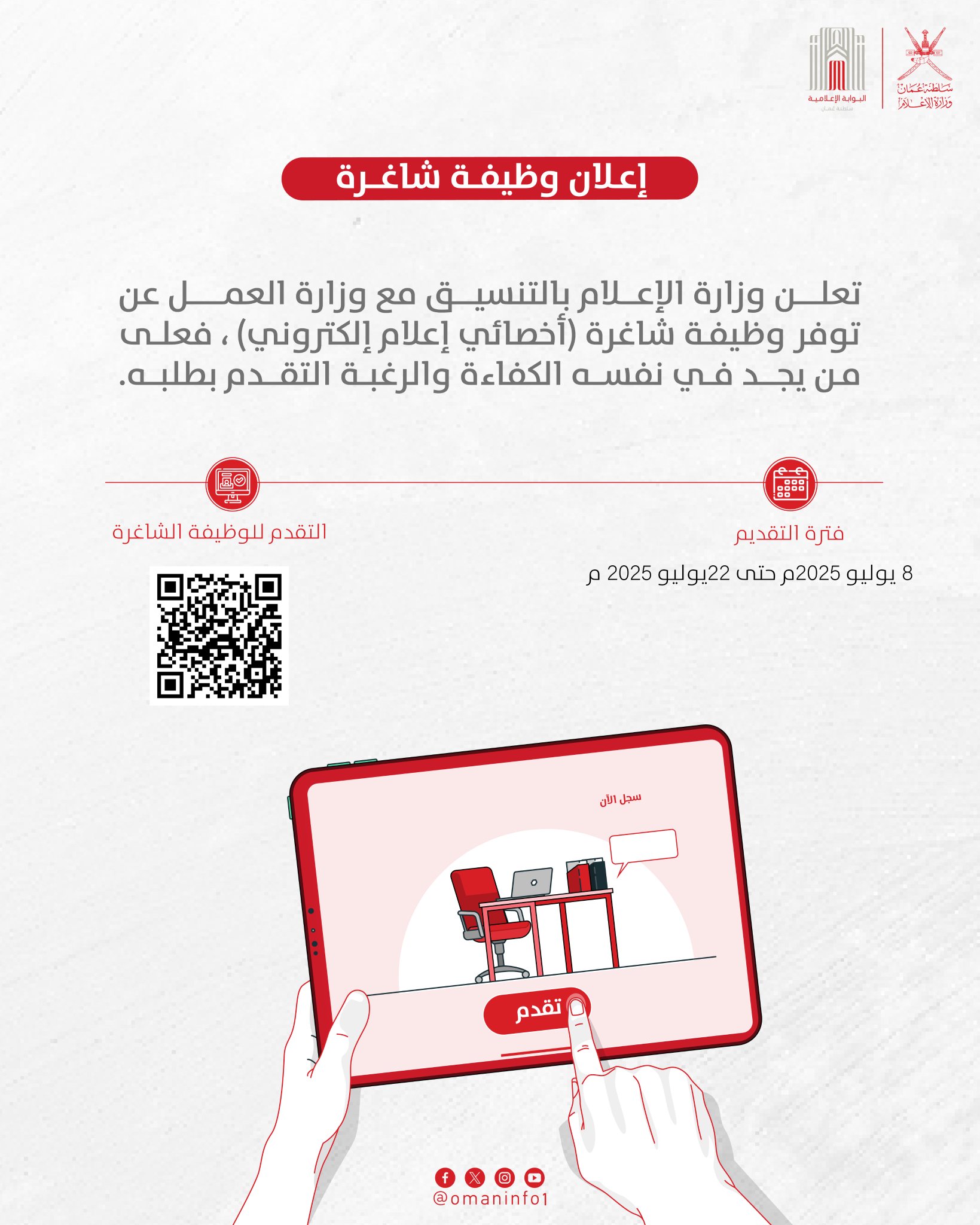 وزارة الإعلام - وظيفة شاغرة ( أخصائي إعلام إلكتروني )