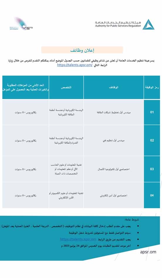 هيئة تنظيم الخدمات العامة - 4 وظائف شاغرة