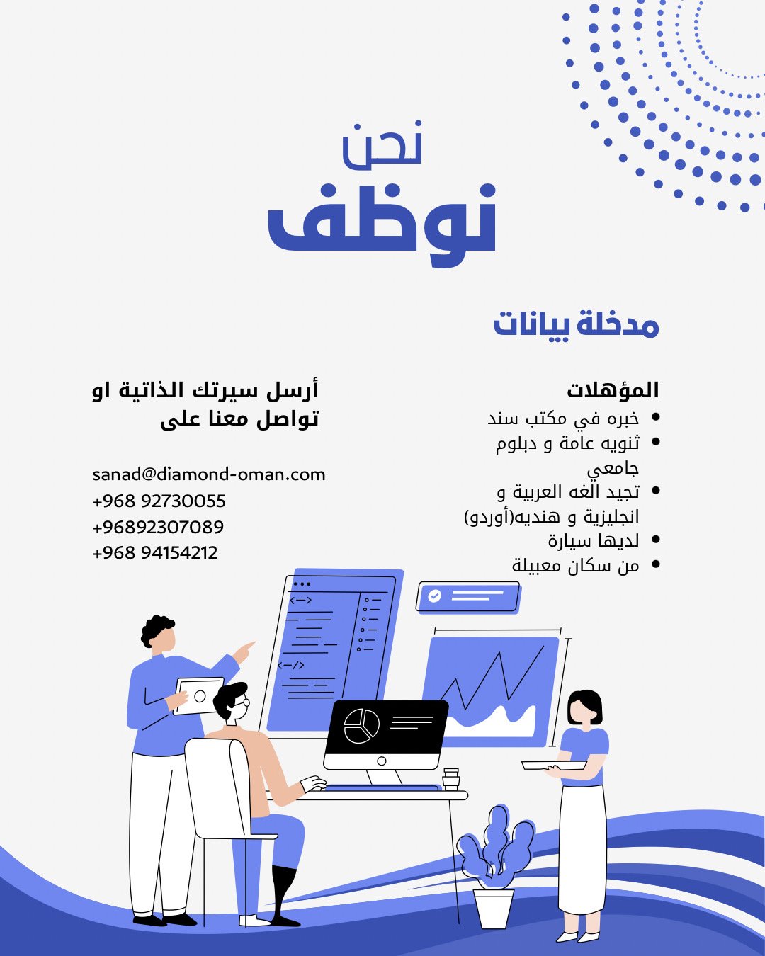 مكتب سند في المعبيلة الجنوبية - وظيفة شاغرة ( موظفة )