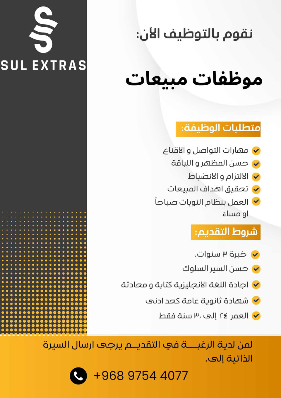 شركة SUL EXTRAS - وظيفة شاغرة ( موظفة مبيعات )