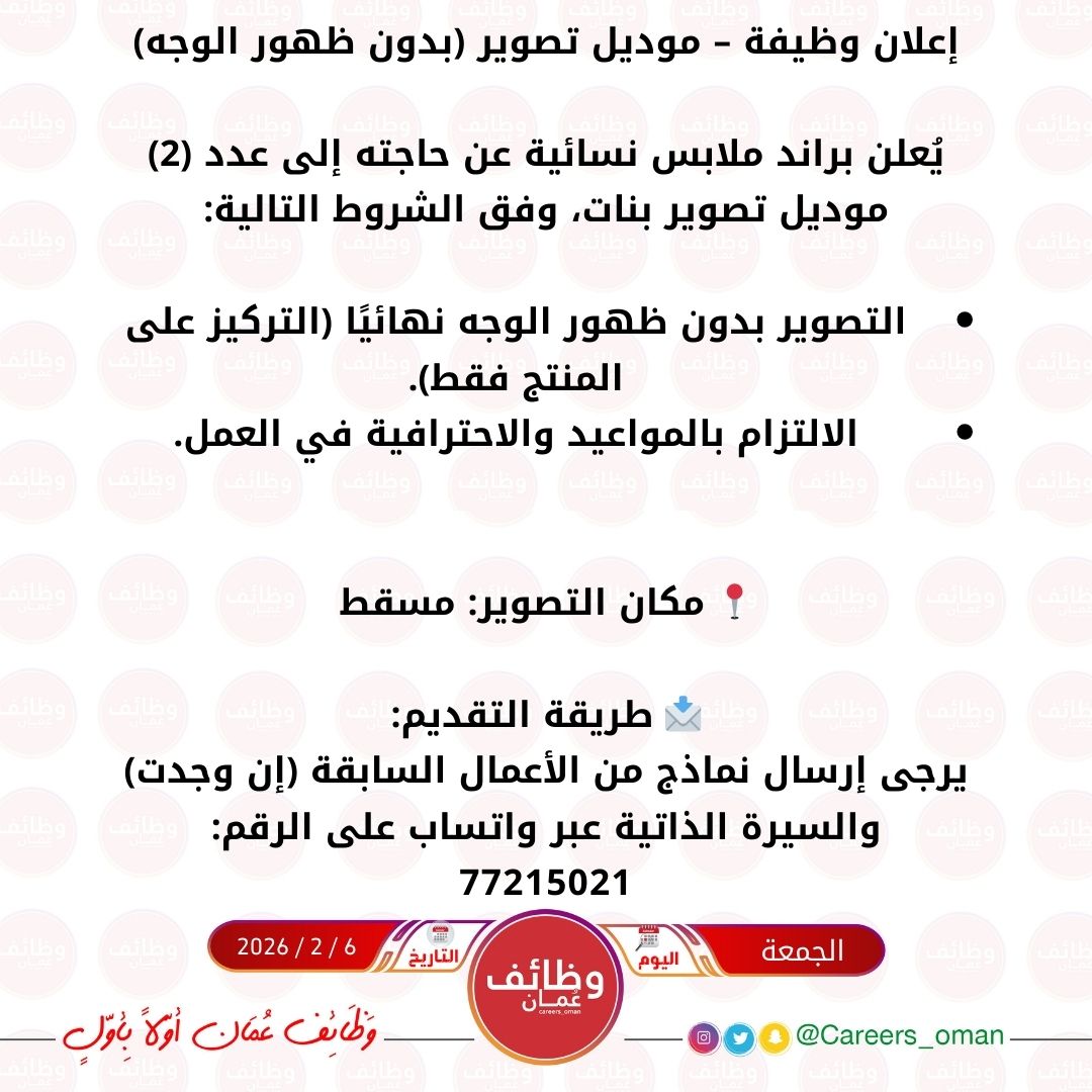 براند ملابس نسائي في مسقط - وظيفة شاغرة ( موديلز تصوير )