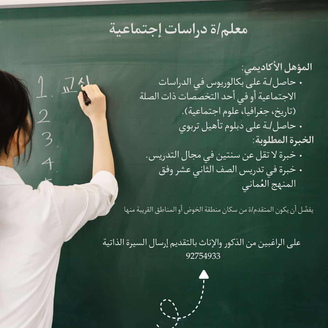 احدى المدارس الخاصة في مسقط - وظيفة شاغرة ( معلم /ة دراسات إجتماعية )