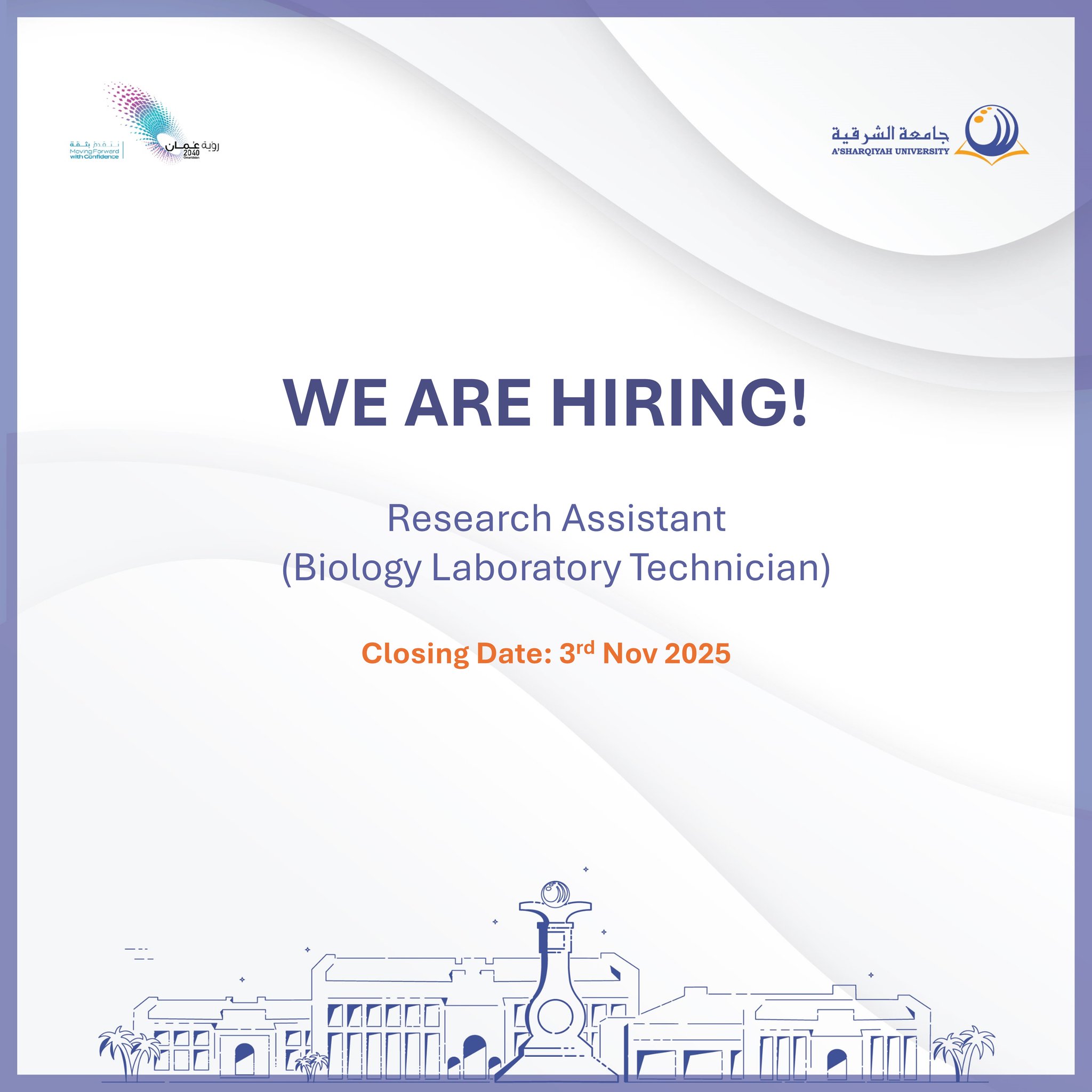 جامعة الشرقية - وظيفة شاغرة ( Research Assistant (Biology Laboratory Technician) )