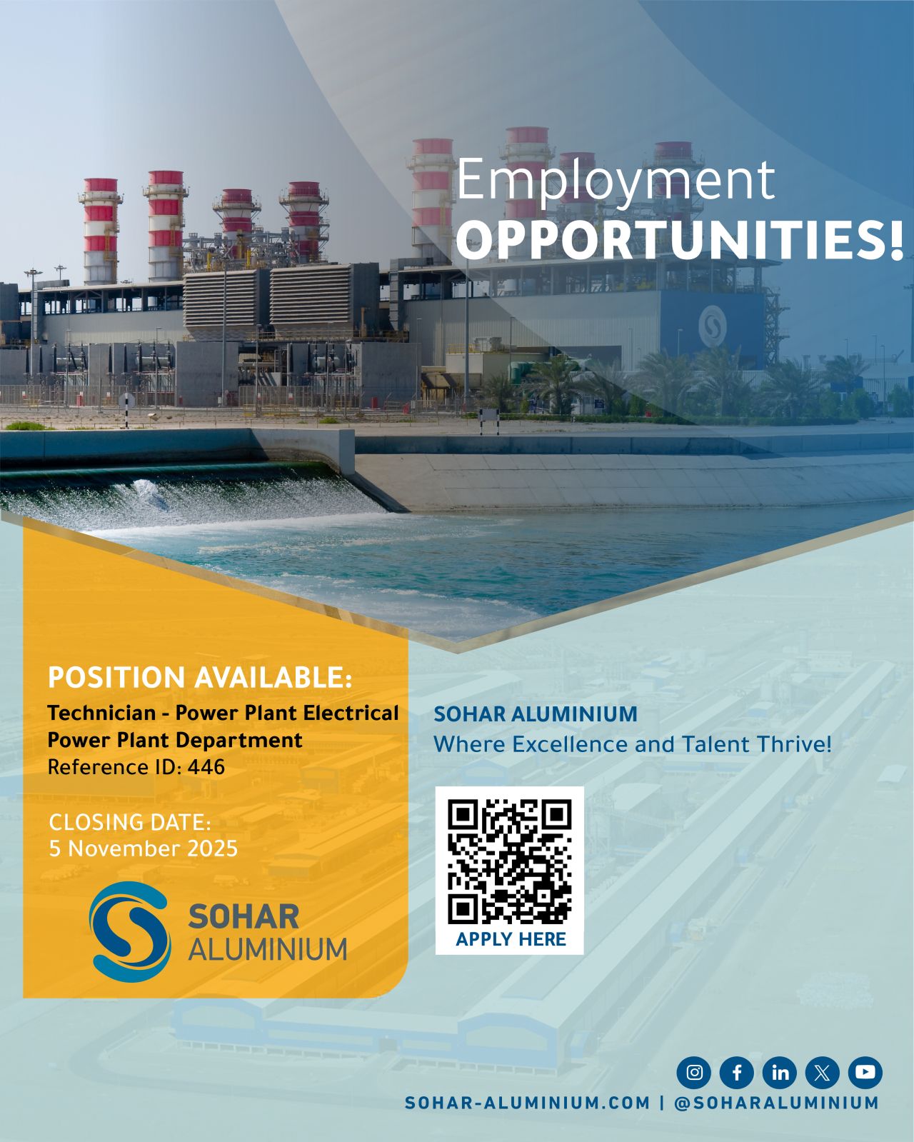 شركة صحار للألمنيوم - وظيفة شاغرة ( Technician - Power Plant Electrical )