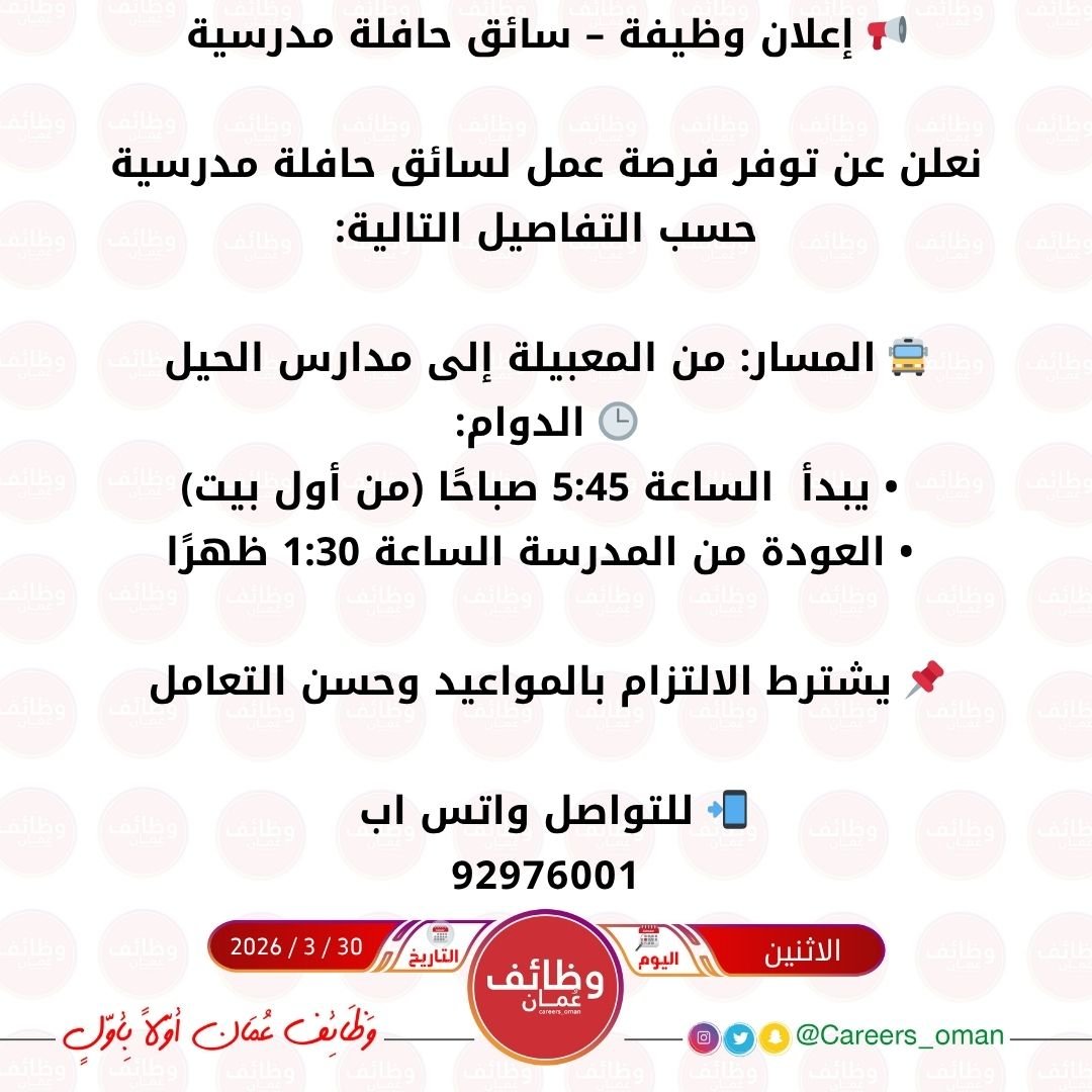 فرصة شاغرة في المعبيلة ( سائق حافلة مدرسية )