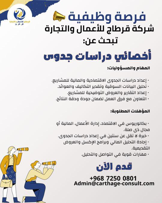 شركة قرطاج للأعمال والتجارة - وظيفة شاغرة ( أخصائي دراسات جدوى )