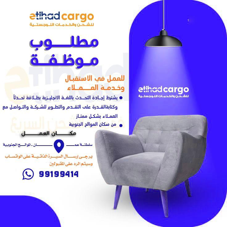 شركة الاتحاد للشحن والخدمات اللوجيستية في الموالح الجنوبية - وظيفة شاغرة ( موظفة استقبال وخدمة العملاء )