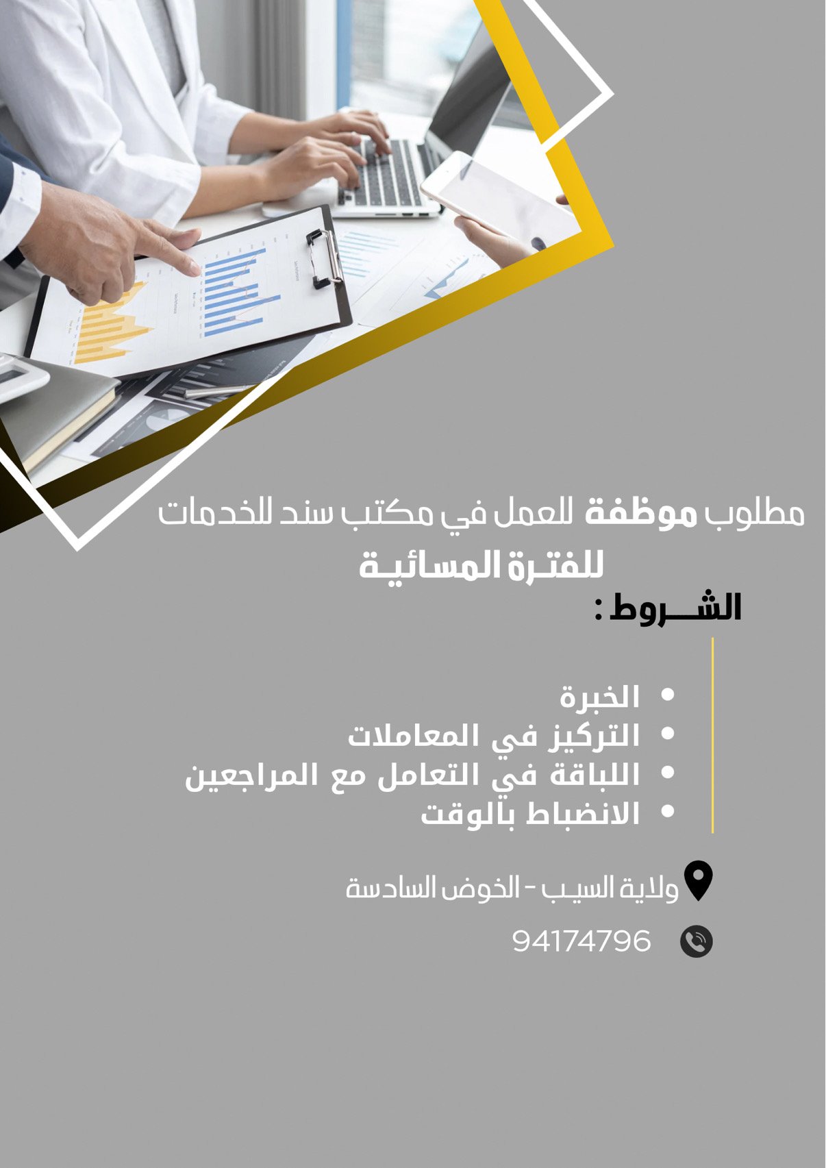 مكتب سند للخدمات في الخوض - وظيفة شاغرة ( موظفة )