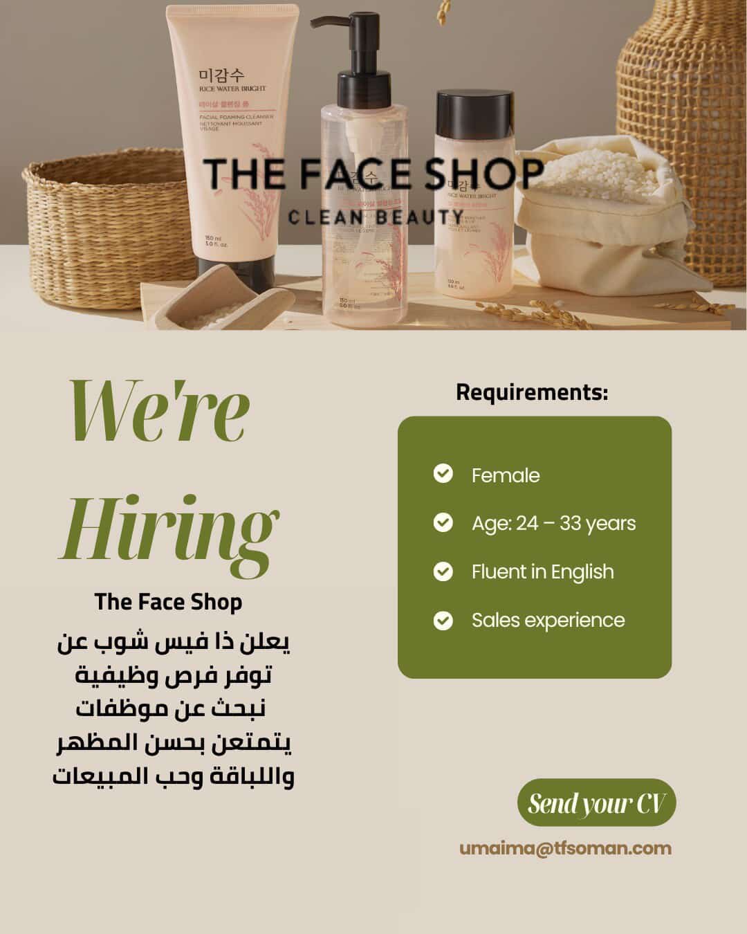 ذا فيس شوب - توفر فرص وظيفية موظفات مبيعات )