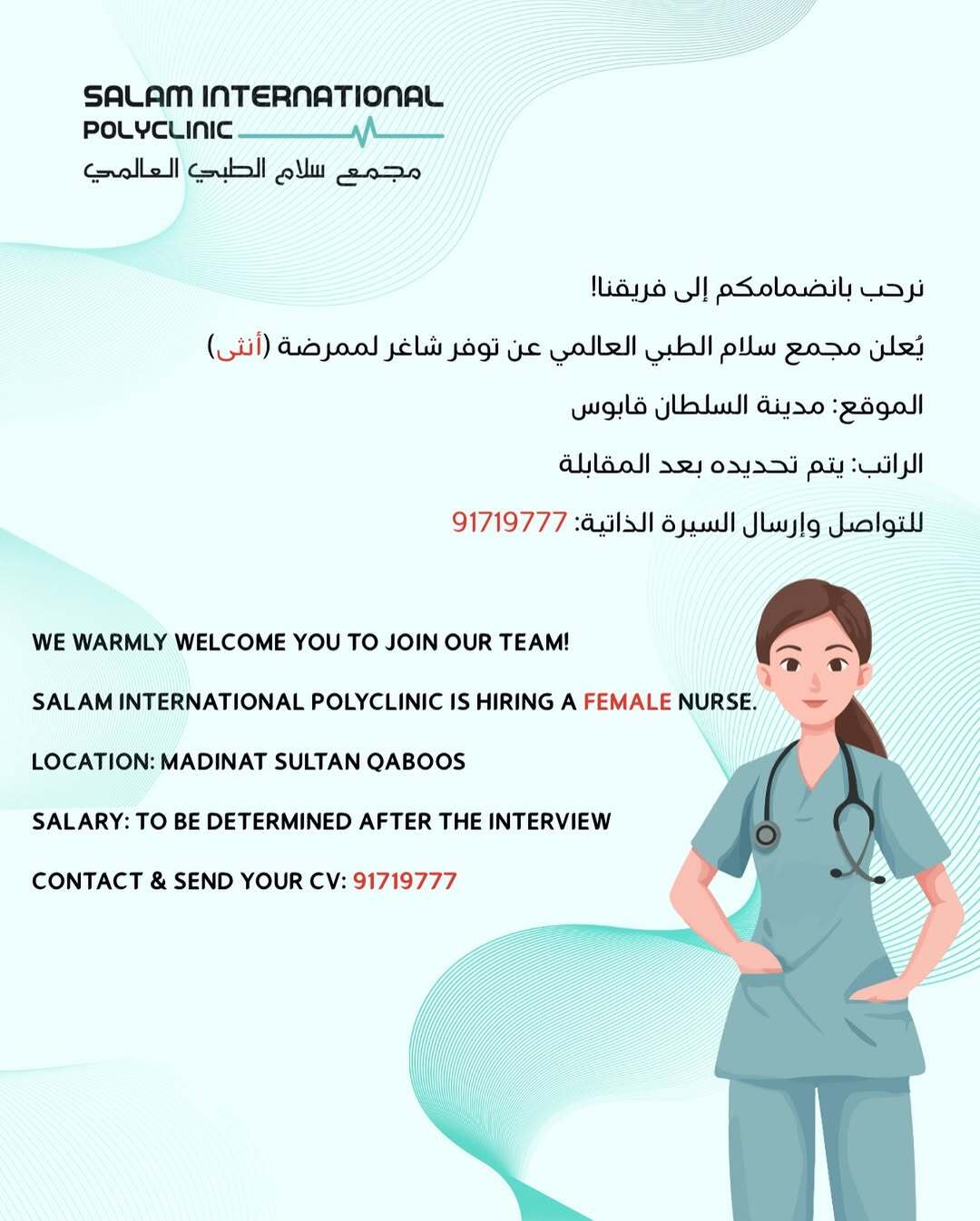 مجمع سلام الطبي العالمي في مسقط - وظيفة شاغرة ( ممرضة )