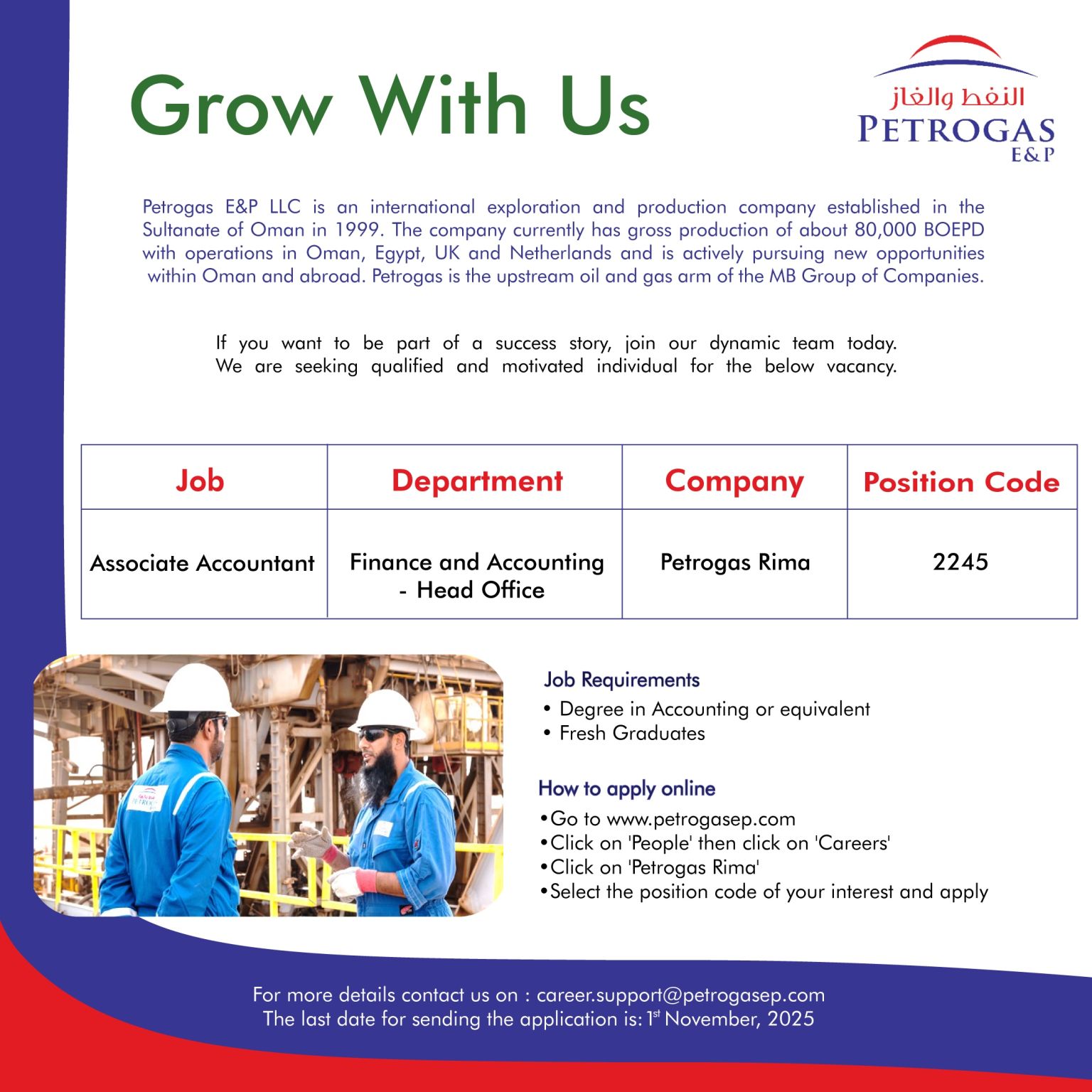 شركة النفط والغاز Petrogas - وظيفة شاغرة ( Associate Accountant )