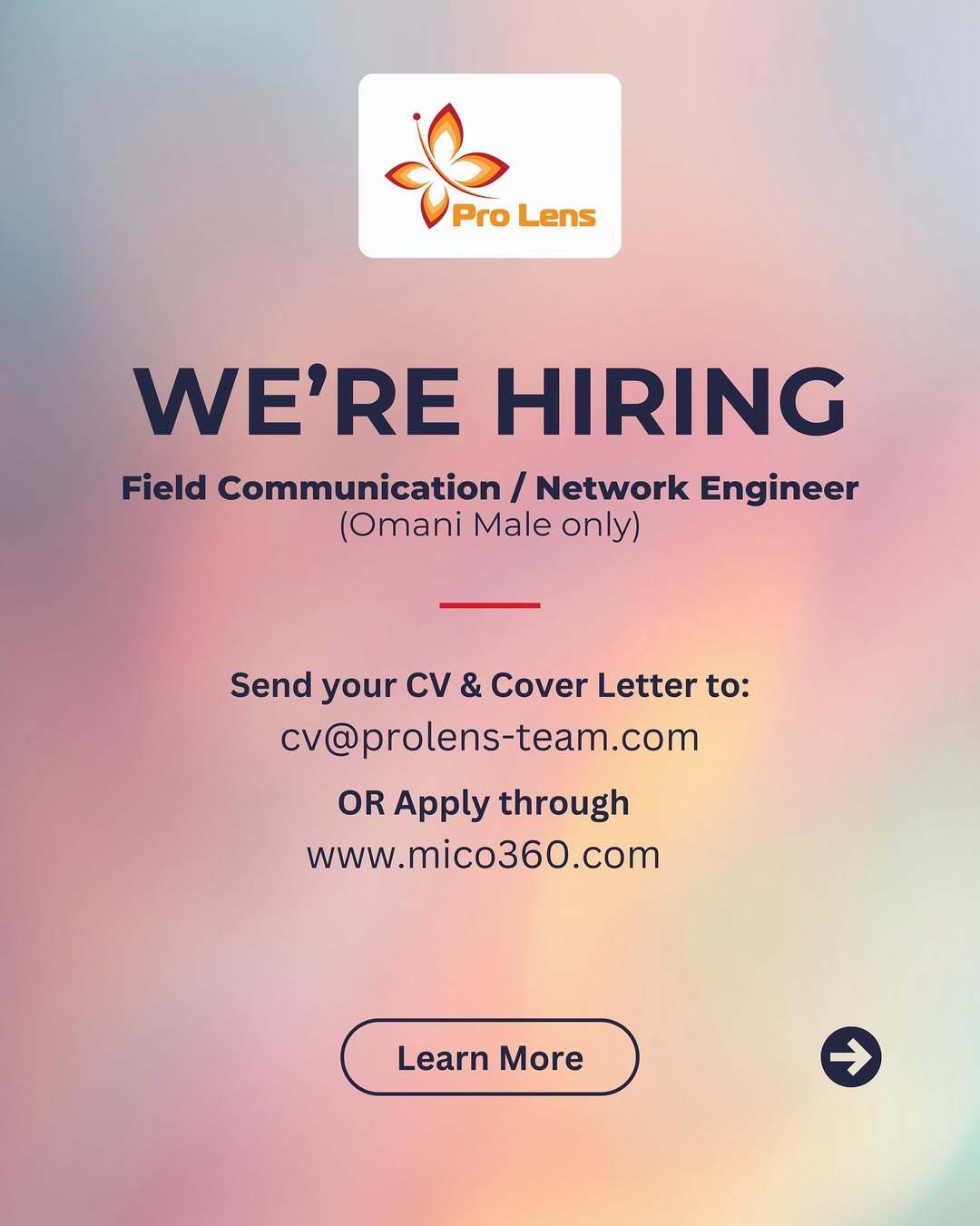 شركة Pro Lens - وظيفة شاغرة ( Field Communication / Network Engineer )