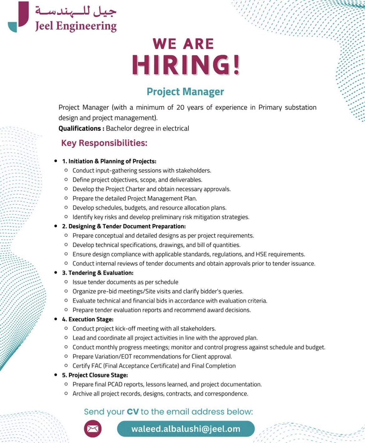شركة جيل للهندسة - وظيفة شاغرة ( Project Manager )